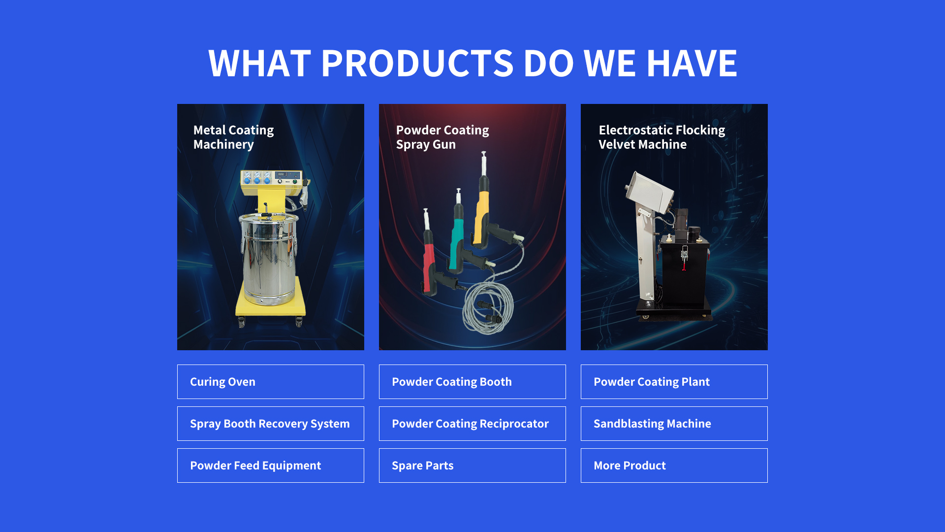 A Powder Coating Machine Factory produces systems that apply and cure powder coatings on industrial products. Key equipment includes electrostatic spray booths, curing ovens, conveyor systems, powder recovery units, and robotic arms.
